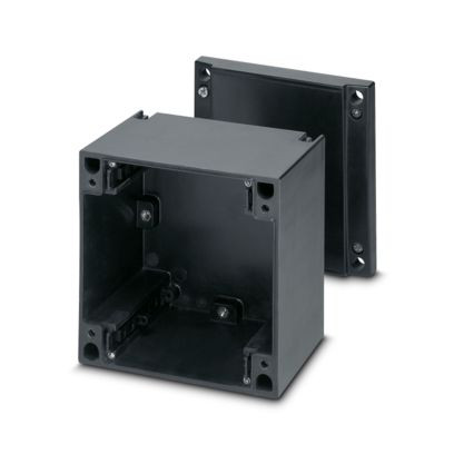 Leergehäuse, mit zwei Verdrahtungsebenen, Material: Polyester glasfaserverstärkt, mit Graphitzusatz, schwarz, 177 mm x 177 mm x 145 mm, Verschlussart: geschraubter Deckel