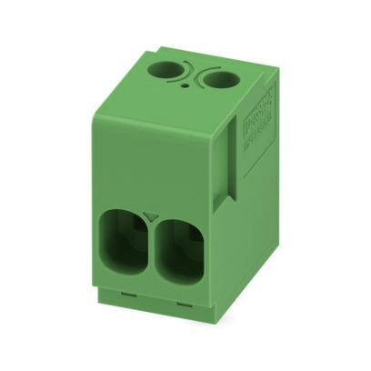 Leiterplattenklemme, Nennstrom: 41 A, Bemessungsspannung (III/2): 1000 V, Nennquerschnitt: 4 mm², Anzahl der Potenziale: 2, Anzahl der Reihen: 1, Polzahl pro Reihe: 2, Artikelfamilie: TDPT 4/..-SC, Rastermaß: 6,35 mm, Anschlussart: Schraubanschluss mit Zughülse, Schraubenangriffsform: L Längsschlitz, Montage: Wellenlöten, Anschlussrichtung Leiter/Platine: 0 °, Farbe: grün, Pin-Layout: Zick-Zack-Pinning W, Pinlänge [P]: 3,5 mm, Anzahl der Lötpins pro Potenzial: 1, Verpackungsart: verpackt im Karton