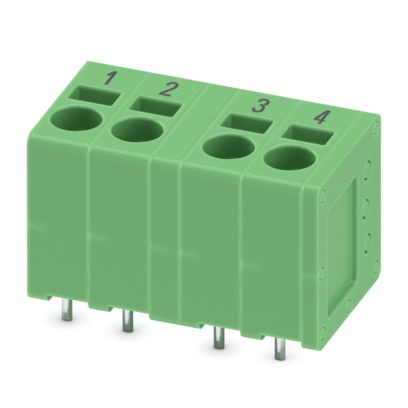 Leiterplattenklemme, Nennstrom: 22 A, Nennquerschnitt: 2,5 mm², Anzahl der Potenziale: 4, Anzahl der Reihen: 1, Polzahl pro Reihe: 4, Artikelfamilie: SPT 2,5/..-V-EX PROFINET, Rastermaß: 5 mm, Anschlussart: Push-in-Federanschluss, Montage: Wellenlöten, Anschlussrichtung Leiter/Platine: 90 °, Farbe: grün, Pin-Layout: Lineares Pinning, Pinlänge [P]: 2,5 mm, Anzahl der Lötpins pro Potenzial: 2, Verpackungsart: verpackt im Karton. Leiterplattenklemme erfüllt die Anforderungen der "Guideline for PROFINET" in der Fassung 05/2017, CAT5 geeignet