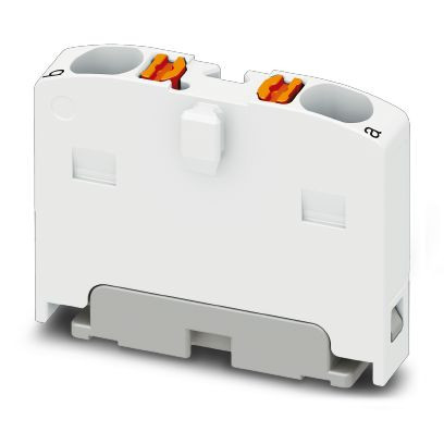 Monoblock, Grundklemme, Nennspannung: 450 V, Nennstrom: 17,5 A, Anzahl der Anschlüsse: 2, Anschlussart: Push-in-Anschluss, Querschnitt: 0,14 mm² - 2,5 mm², Montageart: aufrasten auf Tragschienenadapter, Direktmontage mit Flansch, Fliegend, Farbe: weiß