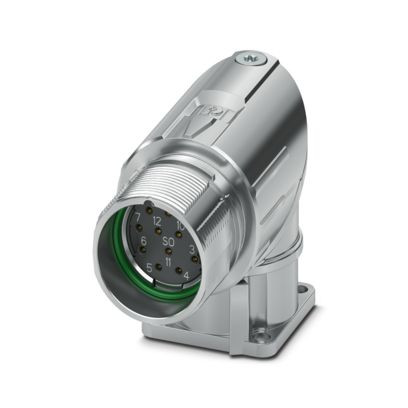 M23, Gerätesteckverbinder Vorderwand, Serie: M23 PRO, gewinkelt drehbar, geschirmt: ja, für Standard- und ONECLICK-Schnellverriegelung, Polzahl: 12, Drehsinn: Gegenlauf, Kontaktart: Buchse, Crimpanschluss, Flanschmaß: 28 mm x 28 mm, Kodierung: N, Artikel ist bleifrei nach RoHS II ohne Ausnahme 6c (Pb < 0,1 %)