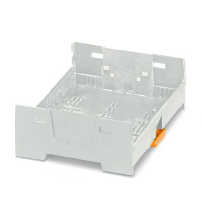 Tragschienengehäuse, Gehäuseunterteil mit Fußriegel, flache Bauform, ohne Lüftungsschlitze, Breite: 90,1 mm, Höhe: 75 mm, Tiefe: 30,3 mm, Farbe: lichtgrau (ähnlich RAL 7035), Querverbindung: ohne Busverbinder, Polzahl Querverbinder: nicht relevant