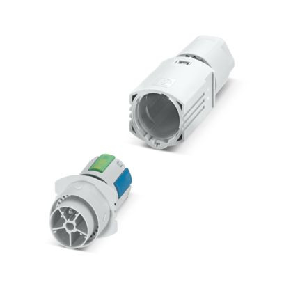 Steckverbinder, Anschlussart: Push-Lock-Anschluss, Polzahl: 4+PE, Stift, 0,5 mm² ... 2,5 mm², 600 V, 17,5 A, PA, lichtgrau, Kodierung: P, Leitungsaußendurchmesser: 7 mm ... 11 mm und 11 mm ... 16 mm