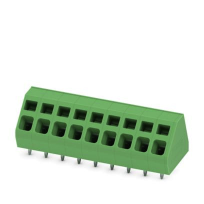 Leiterplattenklemme, Nennstrom: 24 A, Bemessungsspannung (III/2): 400 V, Nennquerschnitt: 2,5 mm², Anzahl der Reihen: 1, Polzahl pro Reihe: 9, Artikelfamilie: ZFKDS(A) 2,5, Rastermaß: 5,08 mm, Anschlussart: Zugfederanschluss, Montage: Wellenlöten, Anschlussrichtung Leiter/Platine: 45 °, Farbe: grün, Pin-Layout: Lineares Pinning, Pinlänge [P]: 3,5 mm, Anzahl der Lötpins pro Potenzial: 2, Verpackungsart: verpackt im Karton