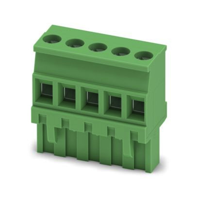 Leiterplattenstecker, Nennquerschnitt: 2,5 mm², Farbe: grün, Nennstrom: 12 A, Bemessungsspannung (III/2): 320 V, Kontaktoberfläche: Sn, Kontaktart: Buchse, Anzahl der Reihen: 1, Polzahl: 5, Artikelfamilie: MVSTBR 2,5/..-ST, Rastermaß: 5,08 mm, Anschlussart: Schraubanschluss mit Zughülse, Schraubenangriffsform: H1L Philipps-Recess mit Längsschlitz, Anschlussrichtung Leiter/Platine: 90 °, Rasthaken: - Rasthaken, Stecksystem: COMBICON MSTB 2,5, Verriegelung: ohne, Befestigungsart: ohne, Verpackungsart: verpackt im Karton