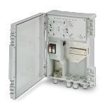 Smart Ethernet Box zum Anschließen von PoE-Endgeräten, zwei PoE-Ports, zwei Uplink-Ports (RJ45), Managed Switch und Überspannungsschutz integriert, Versorgungsspannung 100 ... 240 V AC, Wand- oder Mastmontage