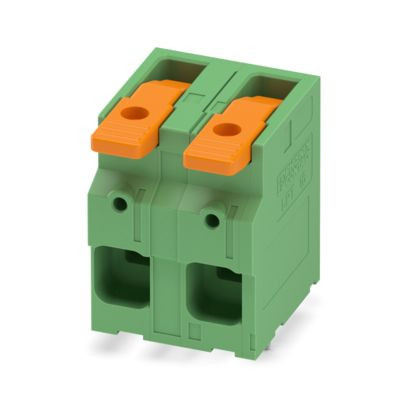 Leiterplattenklemme, Nennstrom: 76 A, Bemessungsspannung (III/2): 1000 V, Nennquerschnitt: 16 mm², Anzahl der Potenziale: 2, Anzahl der Reihen: 1, Polzahl pro Reihe: 2, Artikelfamilie: LPT 16/, Rastermaß: 15 mm, Anschlussart: Hebel-Push-in-Anschluss, Montage: Wellenlöten, Anschlussrichtung Leiter/Platine: 0 °, Farbe: grün, Pin-Layout: Zick-Zack-Pinning W, Pinlänge [P]: 3,6 mm, Verpackungsart: verpackt im Karton