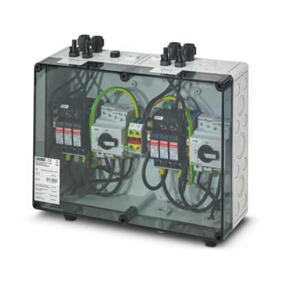 Generatoranschlusskasten; MPP-Spannung: 1000 V DC; String-Anzahl: 2; String-Einführung von oben; Anzahl der unterstützten MPP-Tracker: 2; Überspannungsschutz: T1 / T2; Ausstattung: DC-Lasttrennschalter; Art der Leitungseinführung: SUNCLIX; Lieferumfang: DC-Steckverbinder für den Anschluss des GAKs