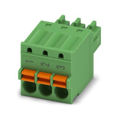 Leiterplattenstecker, Nennquerschnitt: 1,5 mm², Farbe: grün, Nennstrom: 8 A, Bemessungsspannung (III/2): 160 V, Kontaktoberfläche: Sn, Kontaktart: Buchse, Anzahl der Reihen: 1, Polzahl: 3, Artikelfamilie: FK-MCP 1,5/..-ST, Rastermaß: 3,5 mm, Anschlussart: Push-in-Federanschluss, Anschlussrichtung Leiter/Platine: 0 °, Stecksystem: COMBICON MC 1,5, Verriegelung: ohne, Befestigungsart: ohne, Verpackungsart: verpackt im Karton
