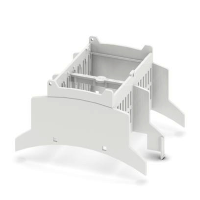 Tragschienengehäuse für den Einsatz in Installationsverteilern nach DIN 43880, Gehäuseoberteil (U22) mit Lüftungsschlitzen, Einbautiefe Anschlusstechnik: 22,35 mm, Breite: 71,6 mm, Höhe: 89,7 mm, Tiefe: 54,85 mm, Farbe: verkehrsweiß (ähnlich RAL 9016)