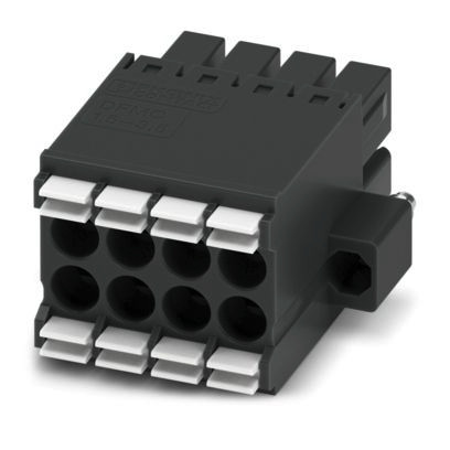 Leiterplattenstecker, Nennquerschnitt: 1,5 mm², Farbe: schwarz, Nennstrom: 8 A, Bemessungsspannung (III/2): 160 V, Kontaktoberfläche: Sn, Kontaktart: Buchse, Anzahl der Reihen: 2, Polzahl: 4, Artikelfamilie: DFMC 1,5/..-STF, Rastermaß: 3,5 mm, Anschlussart: Push-in-Federanschluss, Montage: Stecken in die Grundleiste, Anschlussrichtung Leiter/Platine: 0 °, Stecksystem: COMBICON DFMC 1,5, Verriegelung: Schraubverriegelung, Befestigungsart: Schraubflansch, Verpackungsart: verpackt im Karton