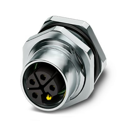 Gerätesteckverbinder Hinterwand, Leistung, 5-polig, Buchse, gerade, M12, L-Kodierung, Wellenlöten, Artikel ist bleifrei nach RoHS II ohne Ausnahme 6c (Pb < 0,1 %)