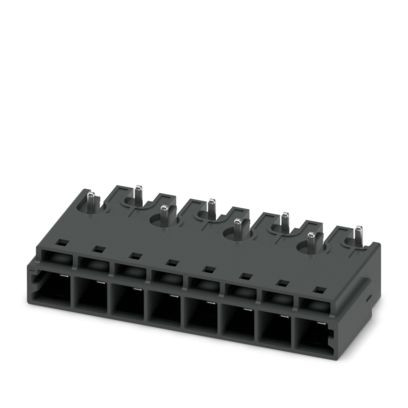 Leiterplatten-Grundleiste, Nennquerschnitt: 4 mm², Farbe: schwarz, Nennstrom: 24 A, Bemessungsspannung (III/2): 800 V, Kontaktoberfläche: Sn, Kontaktart: Stift, Anzahl der Reihen: 1, Polzahl: 8, Artikelfamilie: PC 4/..-GU-THR, Rastermaß: 6,35 mm, Montage: THR-Löten / Wellenlöten, Pin-Layout: Zick-Zack-Pinning M, Pinlänge [P]: 2,6 mm, Anzahl der Lötpins pro Potenzial: 1, Stecksystem: COMBICON PC 4, Ausrichtung Steckgesicht: umgedreht, Verriegelung: ohne, Befestigungsart: ohne, Verpackungsart: verpackt im Karton