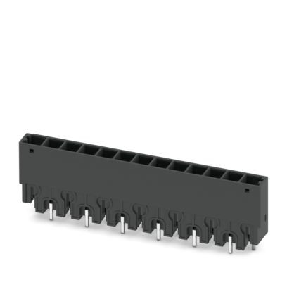 Leiterplatten-Grundleiste, Nennquerschnitt: 4 mm², Farbe: schwarz, Nennstrom: 24 A, Bemessungsspannung (III/2): 800 V, Kontaktoberfläche: Sn, Kontaktart: Stift, Anzahl der Reihen: 1, Polzahl: 13, Artikelfamilie: PCV 4/..-G-THR, Rastermaß: 6,35 mm, Montage: THR-Löten / Wellenlöten, Pin-Layout: Zick-Zack-Pinning W, Pinlänge [P]: 2,6 mm, Anzahl der Lötpins pro Potenzial: 1, Stecksystem: COMBICON PC 4, Ausrichtung Steckgesicht: Standard, Verriegelung: ohne, Befestigungsart: ohne, Verpackungsart: verpackt im Karton