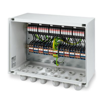 Generatoranschlusskasten; MPP-Spannung: 1000 V DC; String-Anzahl: 2; Anzahl von Eingangs- und Ausgangsstrings identisch; Anzahl der unterstützten MPP-Tracker: 10; Überspannungsschutz: T1 / T2; Ausstattung: ohne Sonderausstattung; Art der Leitungseinführung: Kabelverschraubung