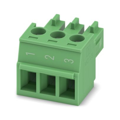 Leiterplattenstecker, Nennquerschnitt: 1,5 mm², Farbe: grün, Nennstrom: 8 A, Bemessungsspannung (III/2): 160 V, Kontaktoberfläche: Sn, Kontaktart: Buchse, Anzahl der Reihen: 1, Polzahl: 3, Artikelfamilie: MC 1,5/..-ST, Rastermaß: 3,81 mm, Anschlussart: Schraubanschluss mit Zughülse, Schraubenangriffsform: L Längsschlitz, Anschlussrichtung Leiter/Platine: 0 °, Stecksystem: COMBICON MC 1,5, Verriegelung: ohne, Befestigungsart: ohne, Verpackungsart: verpackt im Karton