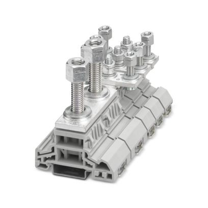Hochstromverbinder, Nennspannung: 1000 V, Anzahl der Anschlüsse: 8, Anschlussart: Bolzenanschluss, Bemessungsquerschnitt: 120 mm², Montageart: NS 35/7,5, NS 35/15, Farbe: grau