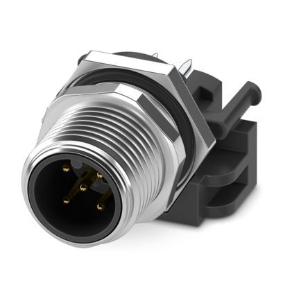 Gerätesteckverbinder Hinterwand, 5-polig, Stift, gerade, M12, A-Kodierung, Wellenlöten
