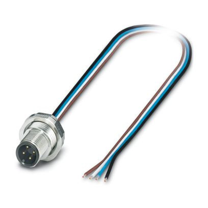 Gerätesteckverbinder Hinterwand, Universal, 4-polig, Stift, gerade, M12-Standard, A-Kodierung, auf freies Leitungsende, Einzellitzen, Kabellänge: 0,5 m, 0,34 mm², TPE-Litze, vergossen