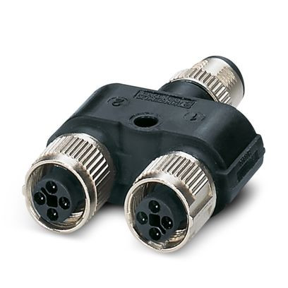 Y-Verteiler, 4-polig, Stecker gerade M12, Kodierung: T, auf Buchse gerade M12, Kodierung: T und Buchse gerade M12, Kodierung: T, für Gleichstrom bis 12 A / 63 V