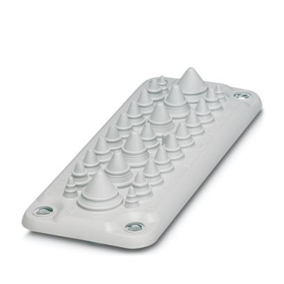 Kabeldurchführungsplatte, Anzahl der Leitungen: 27, Leitungsaußendurchmesser: 4x 5 mm ... 7 mm, 4x 8 mm ... 12 mm, 13x 10 mm ... 14 mm, 4x 14 mm ... 20 mm, 2x 20 mm ... 26 mm, Material: verzinktes Stahlblech (Kern), Material: TPE-SEBS (außenliegendes Material), Farbe: lichtgrau, Länge: 222 mm, Breite: 92 mm, Höhe: 29,5 mm