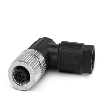 Steckverbinder, Universal, 4-polig, ungeschirmt, Buchse gewinkelt M12, Kodierung: A, Push-Lock-Federanschluss, Rändelmaterial: Zinkdruckguss, vernickelt, Leitungsaußendurchmesser 4 mm ... 8 mm