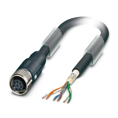 Bussystem-Kabel, VARAN (100 MBit/s), 6-polig, SANTOPRENE halogenfrei/TPE halogenfrei, schwarz RAL 9005, geschirmt, freies Leitungsende, auf Buchse gerade M12 SPEEDCON, Kodierung: A, Kabellänge: 2 m