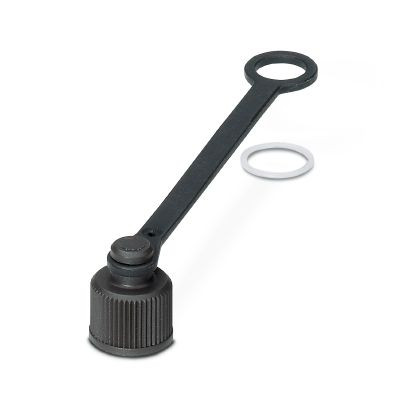 Verschlusskappe M8 aus Kunststoff mit Befestigungsband, für nicht belegte M8-Stecker, mit 7,5 mm Befestigungsöse