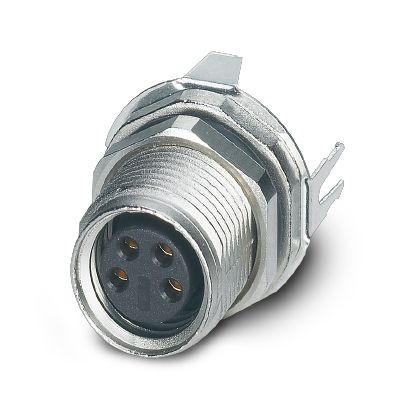 Gerätesteckverbinder Hinterwand, 4-polig, Buchse, gerade, M8, A-Kodierung, Wellenlöten