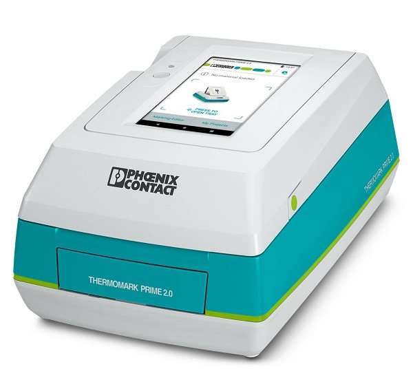 Thermotransferdrucker THERMOMARK PRIME 2.0 zur Bedruckung von Kartenmaterialien mit einer Druckauflösung von 300 dpi, geeignet für den stationären als auch mobilen Einsatz durch ein 7"-Touch Farb-Display mit integrierter "MARKING system App" und einem wechselbaren Akkupack