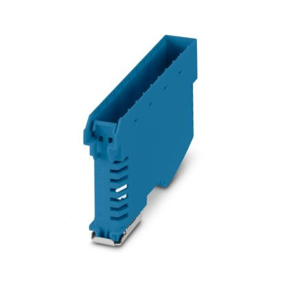 Tragschienengehäuse, Gehäuseunterteil mit Metallfußriegel, mit Lüftungsschlitzen, Breite: 18,9 mm, Höhe: 120,6 mm, Tiefe: 64,3 mm, Farbe: blau (ähnlich RAL 5015), Querverbindung: Tragschienen-Busverbinder (optional), Polzahl Querverbinder: 5 oder 8