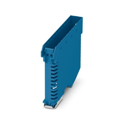 Tragschienengehäuse, Gehäuseunterteil mit Metallfußriegel, mit Funktions-Erdkontakt, mit Lüftungsschlitzen, Breite: 18,9 mm, Höhe: 120,6 mm, Tiefe: 82,85 mm, Farbe: blau (ähnlich RAL 5015), Querverbindung: Tragschienen-Busverbinder (optional), Polzahl Querverbinder: 5 oder 8