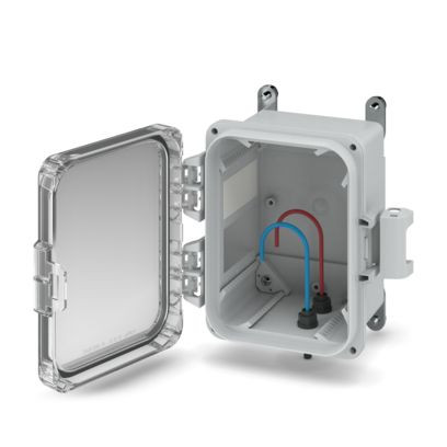 Outdoor-Gehäuse, Komplettgehäuse mit transparentem Deckel inkl. Befestigungsmaterial, Farbe: lichtgrau (ähnlich RAL 7035), Abmessungen: 204 x 251 x 134 mm