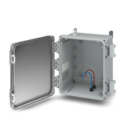 Outdoor-Gehäuse, Komplettgehäuse mit transparentem Deckel inkl. Befestigungsmaterial, Farbe: lichtgrau (ähnlich RAL 7035), Abmessungen: 308 x 352 x 185 mm