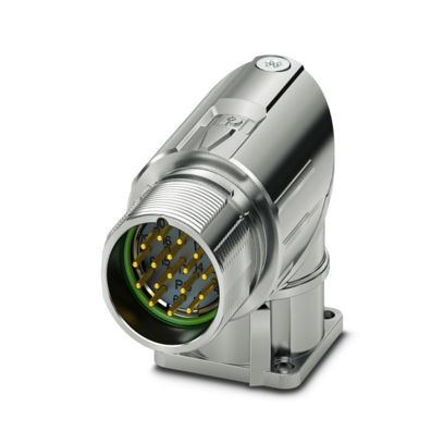 M23, Gerätesteckverbinder Vorderwand, Serie: M23 PRO, gewinkelt drehbar, geschirmt: ja, für Standard- und ONECLICK-Schnellverriegelung, Polzahl: 17, Drehsinn: Standard, Kontaktart: Stift, Crimpanschluss, Flanschmaß: 28 mm x 28 mm, Kodierung: N, Artikel ist bleifrei nach RoHS II ohne Ausnahme 6c (Pb < 0,1 %)