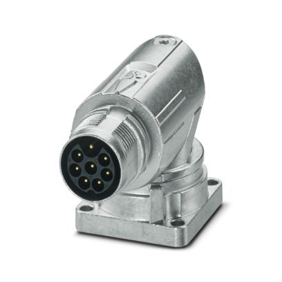 M17, Gerätesteckverbinder Vorderwand, Serie: M17 PRO, gewinkelt drehbar, geschirmt: ja, für Standard- und ONECLICK-Schnellverriegelung, Polzahl: 7+PE, Kontaktart: Stift, Crimpanschluss, Flanschmaß: 28 mm x 28 mm, Artikel ist bleifrei nach RoHS II ohne Ausnahme 6c (Pb < 0,1 %)