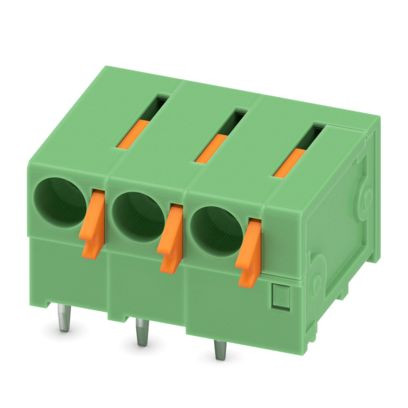 Leiterplattenklemme, Nennstrom: 15 A, Bemessungsspannung (III/2): 400 V, Nennquerschnitt: 1,5 mm², Anzahl der Potenziale: 3, Anzahl der Reihen: 1, Polzahl pro Reihe: 3, Artikelfamilie: FFKDS(A)/H2, Rastermaß: 5,08 mm, Anschlussart: Push-in-Federanschluss, Montage: Wellenlöten, Anschlussrichtung Leiter/Platine: 0 °, Farbe: grün, Pin-Layout: Lineares Pinning, Pinlänge [P]: 3,5 mm, Anzahl der Lötpins pro Potenzial: 2, Verpackungsart: verpackt im Karton