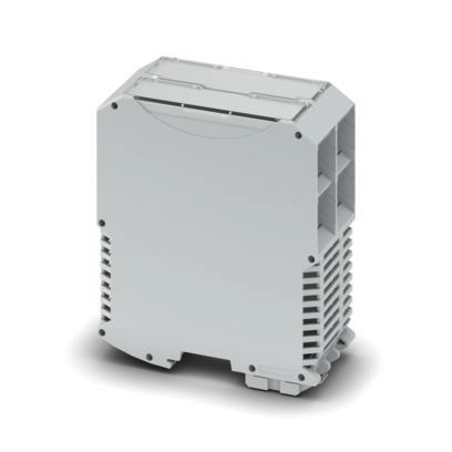 Tragschienengehäuse, Komplettgehäuse mit Metallfußriegel, hohe Bauform, mit Lüftungsschlitzen, Breite: 45,2 mm, Höhe: 99 mm, Tiefe: 113,65 mm, Farbe: lichtgrau (ähnlich RAL 7035), Querverbindung: Tragschienen-Busverbinder (optional), Polzahl Querverbinder: 5