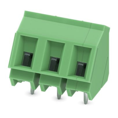 Leiterplattenklemme, Nennstrom: 24 A, Bemessungsspannung (III/2): 630 V, Nennquerschnitt: 2,5 mm², Anzahl der Potenziale: 3, Anzahl der Reihen: 1, Polzahl pro Reihe: 3, Artikelfamilie: GSMKDS 3, Rastermaß: 7,62 mm, Anschlussart: Schraubanschluss mit Zughülse, Schraubenangriffsform: L Längsschlitz, Montage: Wellenlöten, Anschlussrichtung Leiter/Platine: 55 °, Farbe: grün, Pin-Layout: Lineares Pinning, Pinlänge [P]: 4,5 mm, Anzahl der Lötpins pro Potenzial: 1, Verpackungsart: verpackt im Karton. Der Artikel ist zu unterschiedlichen Polzahlen anreihbar!