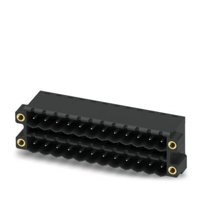 Leiterplatten-Grundleiste, Nennquerschnitt: 2,5 mm², Farbe: schwarz, Nennstrom: 12 A, Bemessungsspannung (III/2): 320 V, Kontaktoberfläche: Sn, Kontaktart: Stift, Anzahl der Potenziale: 24, Anzahl der Reihen: 2, Polzahl: 12, Anzahl der Anschlüsse: 24, Artikelfamilie: CCDN 2,5/..-G1F-THR, Rastermaß: 5 mm, Montage: THR-Löten / Wellenlöten, Pin-Layout: Lineares Pinning, Pinlänge [P]: 2,6 mm, Anzahl der Lötpins pro Potenzial: 1, Stecksystem: COMBICON MSTB 2,5, Ausrichtung Steckgesicht: Standard, Verriegelung: Schraubverriegelung, Befestigungsart: Gewindeflansch, Verpackungsart: verpackt im Karton