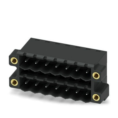 Leiterplatten-Grundleiste, Nennquerschnitt: 2,5 mm², Farbe: schwarz, Nennstrom: 12 A, Bemessungsspannung (III/2): 320 V, Kontaktoberfläche: Sn, Kontaktart: Stift, Anzahl der Potenziale: 14, Anzahl der Reihen: 2, Polzahl: 7, Anzahl der Anschlüsse: 14, Artikelfamilie: CCDN 2,5/..-G1F-THR, Rastermaß: 5,08 mm, Montage: THR-Löten / Wellenlöten, Pin-Layout: Lineares Pinning, Pinlänge [P]: 2,6 mm, Anzahl der Lötpins pro Potenzial: 1, Stecksystem: COMBICON MSTB 2,5, Ausrichtung Steckgesicht: Standard, Verriegelung: Schraubverriegelung, Befestigungsart: Gewindeflansch, Verpackungsart: verpackt im Karton