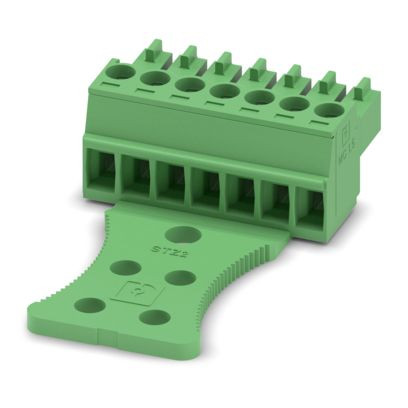 Leiterplattenstecker, Nennquerschnitt: 1,5 mm², Farbe: grün, Nennstrom: 8 A, Bemessungsspannung (III/2): 160 V, Kontaktoberfläche: Sn, Kontaktart: Buchse, Anzahl der Potenziale: 7, Anzahl der Reihen: 1, Polzahl: 7, Anzahl der Anschlüsse: 7, Artikelfamilie: MC 1,5/..-ST, Rastermaß: 3,5 mm, Anschlussart: Schraubanschluss mit Zughülse, Schraubenangriffsform: L Längsschlitz, Anschlussrichtung Leiter/Platine: 0 °, Stecksystem: COMBICON MC 1,5, Verriegelung: ohne, Befestigungsart: ohne, Verpackungsart: verpackt im Karton, Ziehhilfe (STZ2)