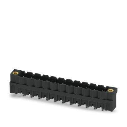 Leiterplatten-Grundleiste, Nennquerschnitt: 2,5 mm², Farbe: schwarz, Nennstrom: 12 A, Bemessungsspannung (III/2): 320 V, Kontaktoberfläche: Sn, Kontaktart: Stift, Anzahl der Potenziale: 11, Anzahl der Reihen: 1, Polzahl: 11, Anzahl der Anschlüsse: 11, Artikelfamilie: CCV 2,5/..-GF-LR, Rastermaß: 5,08 mm, Montage: THR-Löten / Wellenlöten, Pin-Layout: Lineares Pinning, Pinlänge [P]: 2,6 mm, Anzahl der Lötpins pro Potenzial: 1, Stecksystem: COMBICON MSTB 2,5, Ausrichtung Steckgesicht: Standard, Verriegelung: Lock-and-Release-Verriegelung, Befestigungsart: Lock & Release Gewindeflansch, Verpackungsart: verpackt im Karton