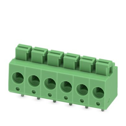 Leiterplattenklemme, Nennstrom: 16 A, Bemessungsspannung (III/2): 400 V, Nennquerschnitt: 1,5 mm², Anzahl der Potenziale: 6, Anzahl der Reihen: 1, Polzahl pro Reihe: 6, Artikelfamilie: PTS 1,5/..-H, Rastermaß: 5 mm, Anschlussart: Push-in-Federanschluss, Montage: Wellenlöten, Anschlussrichtung Leiter/Platine: 0 °, Farbe: grün, Pin-Layout: Lineares Pinning, Pinlänge [P]: 2,5 mm, Anzahl der Lötpins pro Potenzial: 1, Verpackungsart: verpackt im Karton