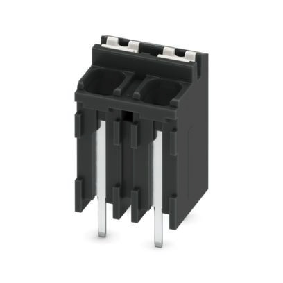 Leiterplattenklemme, Nennstrom: 17,5 A, Bemessungsspannung (III/2): 320 V, Nennquerschnitt: 1,5 mm², Anzahl der Potenziale: 2, Anzahl der Reihen: 1, Polzahl pro Reihe: 2, Artikelfamilie: SPT 1,5/..-V-THR, Rastermaß: 5,08 mm, Anschlussart: Push-in-Federanschluss, Montage: THR-Löten / Wellenlöten, Anschlussrichtung Leiter/Platine: 90 °, Farbe: schwarz, Pin-Layout: Lineares Pinning, Pinlänge [P]: 2,6 mm, Anzahl der Lötpins pro Potenzial: 2, Verpackungsart: verpackt im Karton