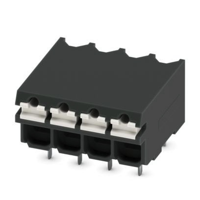 Leiterplattenklemme, Nennstrom: 17,5 A, Bemessungsspannung (III/2): 160 V, Nennquerschnitt: 1,5 mm², Anzahl der Potenziale: 4, Anzahl der Reihen: 1, Polzahl pro Reihe: 4, Artikelfamilie: SPT 1,5/..-H-THR, Rastermaß: 3,5 mm, Anschlussart: Push-in-Federanschluss, Montage: THR-Löten / Wellenlöten, Anschlussrichtung Leiter/Platine: 0 °, Farbe: schwarz, Pin-Layout: Lineares Pinning, Pinlänge [P]: 2,6 mm, Anzahl der Lötpins pro Potenzial: 2, Verpackungsart: verpackt im Karton. CAT 5 geeignet