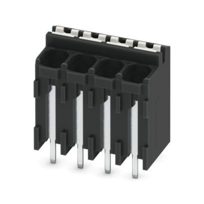 Leiterplattenklemme, Nennstrom: 17,5 A, Bemessungsspannung (III/2): 160 V, Nennquerschnitt: 1,5 mm², Anzahl der Potenziale: 4, Anzahl der Reihen: 1, Polzahl pro Reihe: 4, Artikelfamilie: SPT 1,5/..-V-THR, Rastermaß: 3,5 mm, Anschlussart: Push-in-Federanschluss, Montage: THR-Löten / Wellenlöten, Anschlussrichtung Leiter/Platine: 90 °, Farbe: schwarz, Pin-Layout: Lineares Pinning, Pinlänge [P]: 2 mm, Anzahl der Lötpins pro Potenzial: 2, Verpackungsart: Gurt in 44 mm Breite. CAT 5 geeignet