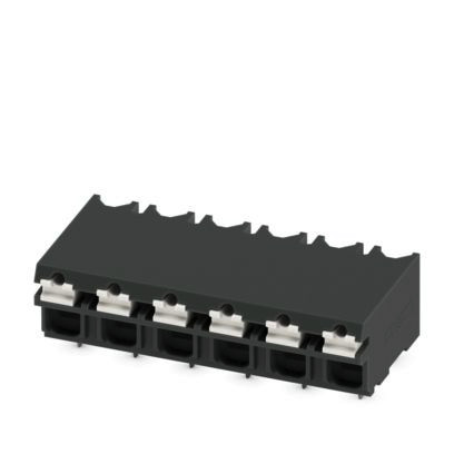 Leiterplattenklemme, Nennstrom: 17,5 A, Bemessungsspannung (III/2): 320 V, Nennquerschnitt: 1,5 mm², Anzahl der Potenziale: 6, Anzahl der Reihen: 1, Polzahl pro Reihe: 6, Artikelfamilie: SPT 1,5/..-H-THR, Rastermaß: 5 mm, Anschlussart: Push-in-Federanschluss, Montage: THR-Löten / Wellenlöten, Anschlussrichtung Leiter/Platine: 0 °, Farbe: schwarz, Pin-Layout: Lineares Pinning, Pinlänge [P]: 2 mm, Anzahl der Lötpins pro Potenzial: 2, Verpackungsart: Gurt in 56 mm Breite