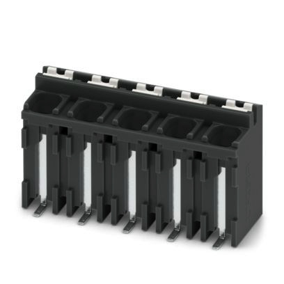 Leiterplattenklemme, Nennstrom: 17,5 A, Bemessungsspannung (III/2): 320 V, Nennquerschnitt: 1,5 mm², Anzahl der Potenziale: 5, Anzahl der Reihen: 1, Polzahl pro Reihe: 5, Artikelfamilie: SPT 1,5/..-V-SMD, Rastermaß: 5 mm, Anschlussart: Push-in-Federanschluss, Montage: SMD-Löten, Anschlussrichtung Leiter/Platine: 90 °, Farbe: schwarz, Pin-Layout: Lineare Pad-Geometrie, Anzahl der Lötpins pro Potenzial: 2, Verpackungsart: Gurt in 44 mm Breite