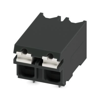 Leiterplattenklemme, Nennstrom: 17,5 A, Bemessungsspannung (III/2): 320 V, Nennquerschnitt: 1,5 mm², Anzahl der Potenziale: 2, Anzahl der Reihen: 1, Polzahl pro Reihe: 2, Artikelfamilie: SPT 1,5/..-H-SMD, Rastermaß: 5 mm, Anschlussart: Push-in-Federanschluss, Montage: SMD-Löten, Anschlussrichtung Leiter/Platine: 0 °, Farbe: schwarz, Pin-Layout: Lineare Pad-Geometrie, Anzahl der Lötpins pro Potenzial: 1, Verpackungsart: Gurt in 24 mm Breite